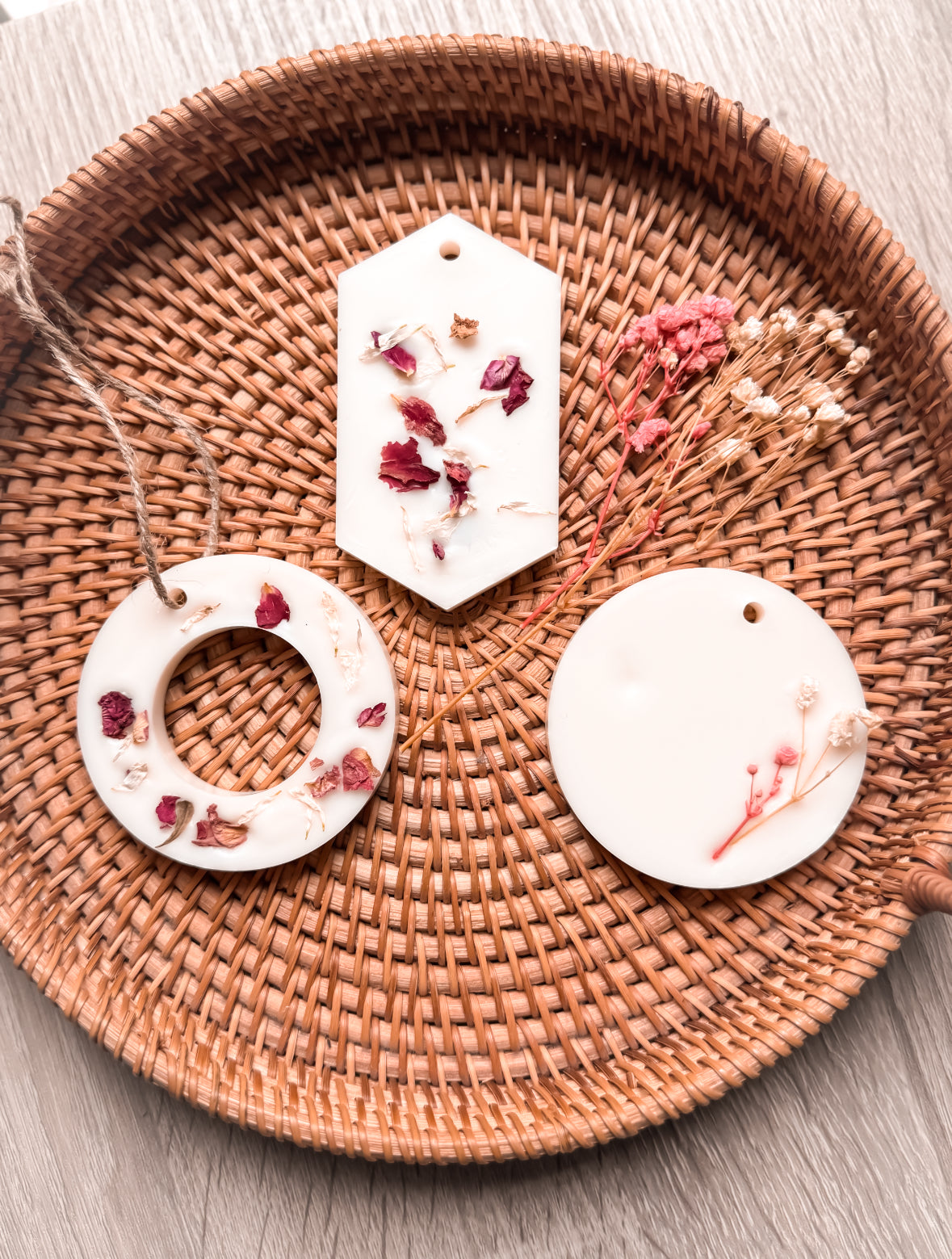 Sans CMR et sans colorant, chaque suspension est délicatement ornée de fleurs séchées, ce qui fait une décoration parfumée unique.